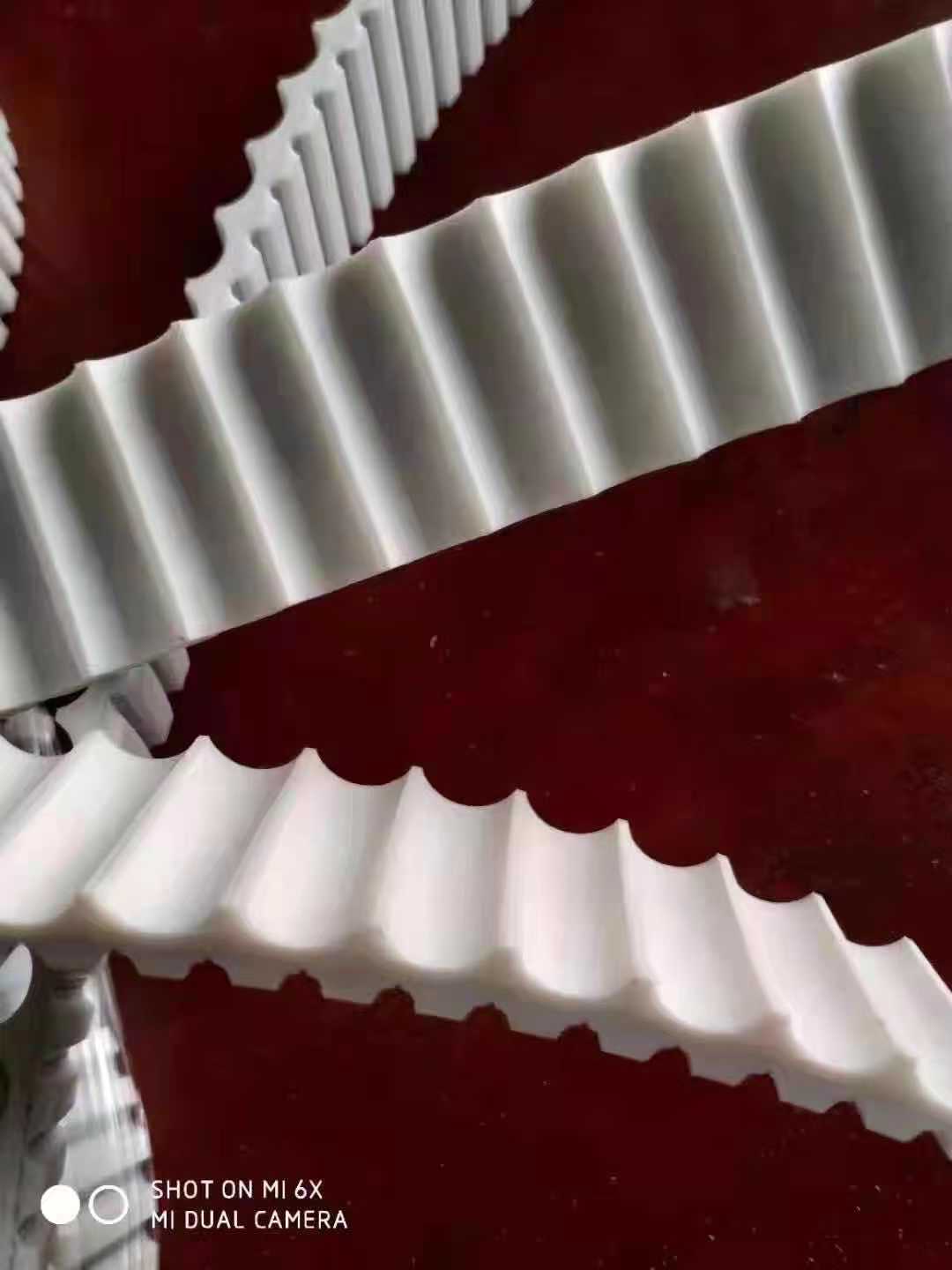 橡膠同步帶采用優(yōu)質(zhì)進(jìn)口氯丁膠為主要原料,配入多種不同用途的輔料;骨架材料為進(jìn)口優(yōu)質(zhì)玻璃纖維線繩;帶齒表面采用尼龍66高彈力布做保護(hù)。橡膠同步帶采用優(yōu)質(zhì)進(jìn)口氯丁膠為主要原料,配入多種不同用途的輔料;骨架材料為進(jìn)口優(yōu)質(zhì)玻璃纖維線繩;帶齒表面采用尼龍66高彈力布做保護(hù)。性能 具有動(dòng)態(tài)屈繞性好,抗龜裂性能好,臭氧性能優(yōu)良,耐老化,耐熱,耐油,耐磨損等特點(diǎn)。氯丁膠同步帶廣泛應(yīng)用于紡織、汽車、化纖、卷煙、造紙、印刷、化工的機(jī)械設(shè)備;近年來,采礦冶金、鋼鐵機(jī)械、醫(yī)療設(shè)備需求量日益增加.