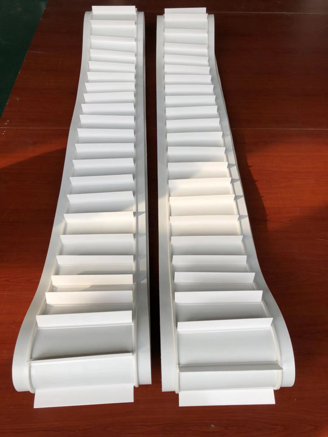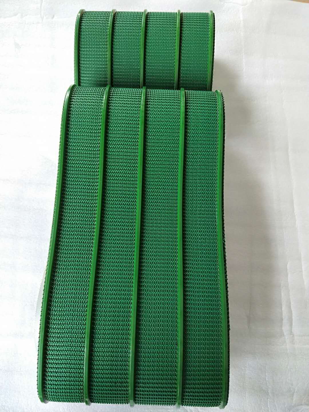 2.  輸送帶表面可加裙邊擋板; 輸送帶背面可加導(dǎo)條、紅膠、海綿等特殊加工。