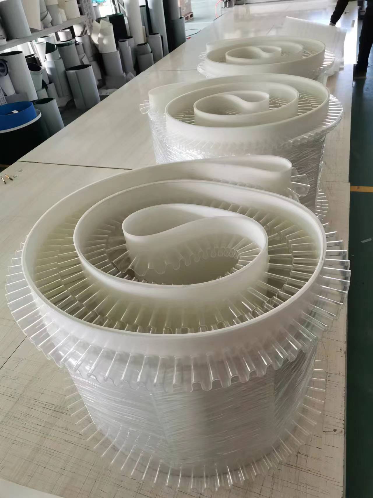 原材料,產(chǎn)品配方科學(xué)合理,符合食品衛(wèi)生標(biāo)準(zhǔn)可與食品直接接觸,色澤適度,無異味。并且具有:耐油、耐腐蝕、耐寒、耐切割等特性。聚氨酯(PU)輸送帶使用經(jīng)過特殊處理的高強(qiáng)度人工合成聚氨酯織物作為承載骨架,涂覆層由聚氨酯(PU)樹脂制成。不但具有普通輸送帶抗拉強(qiáng)度高、曲繞性好、輕、薄、韌等特點(diǎn),而且耐油,無毒衛(wèi)生,容易清洗。該類輸送帶完全符合美國FDA衛(wèi)生標(biāo)準(zhǔn),耐磨,抗物理老化,是一種經(jīng)久耐用的輸送產(chǎn)品