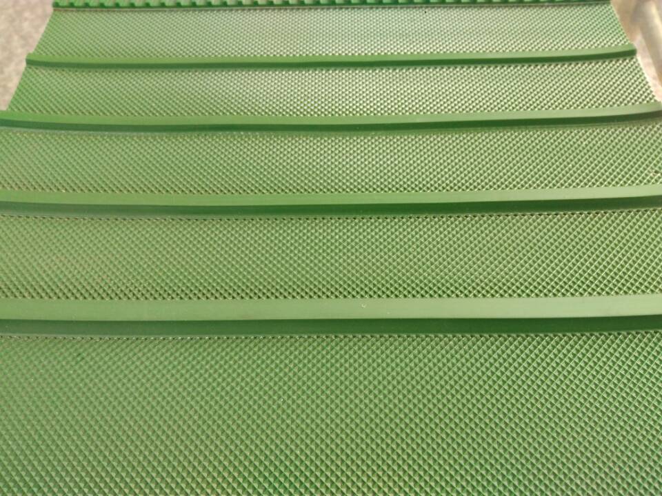 導(dǎo)條輸送帶,導(dǎo)條可加在表面或背面,加在背面能起到防跑偏的作用、加在表面可定位物料、承載物料。