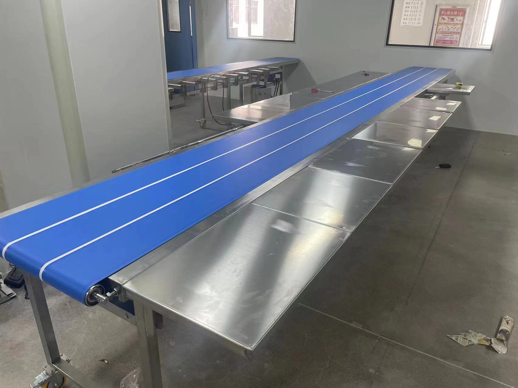 食品輸送機采用專用的食品級輸送帶,可滿足食品、制藥、日用化工等行業(yè)的要求。輸送帶有橡膠、帆布、PVC、PU等多種材質(zhì),除用于普通物料的輸送外,還可滿足耐油、耐腐蝕、防靜電等有特殊要求物料的輸送。 另外輸送帶上還可以增加推板、側(cè)擋板、裙邊等附件,以滿足不同工藝的要求。