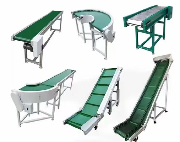 皮帶線可輸送的物料種類繁多,既可輸送各種散料,也可輸送各種紙箱、包裝袋等單件重量不大的件貨,用途廣泛。結構形式多樣,有槽型皮帶機、平型皮帶機、爬坡皮帶機、側傾皮帶線、轉彎皮帶線等多種形式,輸送帶上還可増推板、側擋板、裙邊等附件、能滿足各種工藝要求。